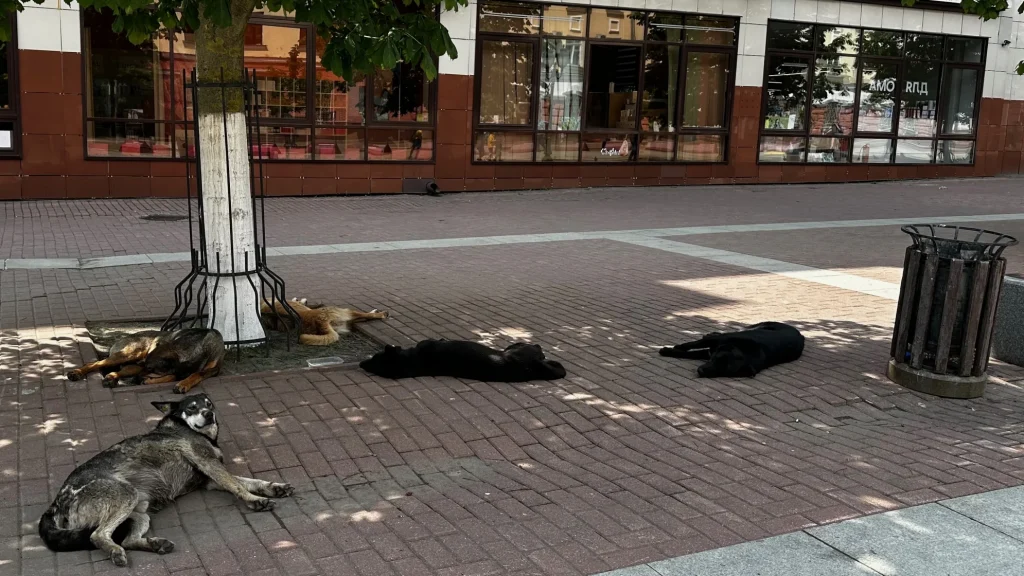 Сытые бродячие собаки оккупировали центральный пешеходный бульвар в Брянске