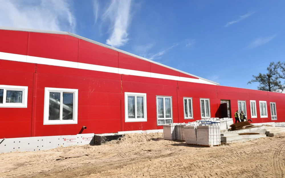 В Севске стройка идёт по графику. Уже возводятся стены, подрядчик завершает монтаж сэндвич-панелей. До конца апреля здесь должны закрыть контур здания и залить дно чаши бассейна. В мае начнётся оштукатуривание стен.