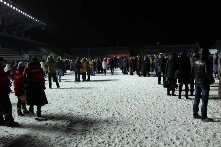 Лариса Куркина радостно приветствовала несколько тысяч человек, собравшихся на стадионе и около него:
