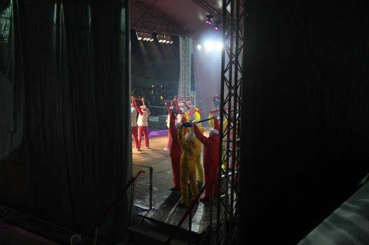 Вопреки ожиданиям чаша самого стадиона была заполнена не настолько, чтобы здесь давились. Полиция вежливо и предусмотрительно распределяла публику по разным коридорам. Вдоль трибун протянулся 156-метровый рушник с названиями районов Украины, Белоруссии и России. Этот льняной коридор держали молодые волонтеры. Сцена призывала к веселью – на ней выступали танцоры, гимнасты, певцы. Если и был избыток чего-то, так это рекламы «Кока-Колы». Даже после торжеств по улицам шли со светящими бутылками, призывающими «вливаться», не только подростки или дети, но и взрослые.