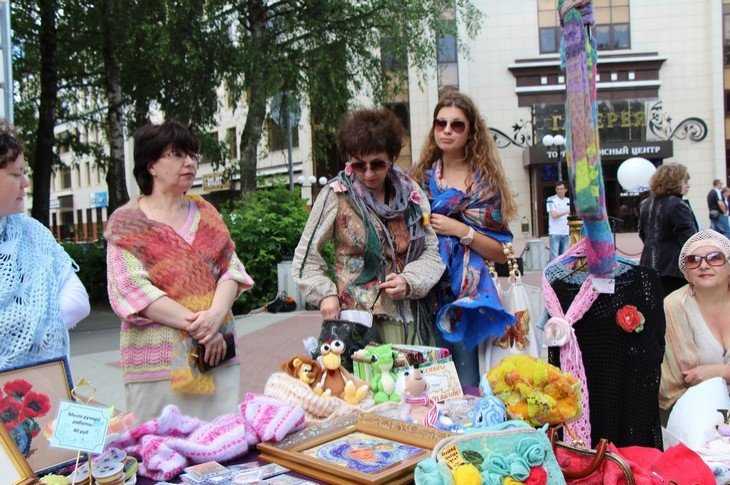 Идем от мастера к мастеру и понимаем, что город творческих людей бесконечно интересен. Глиняные свистки в виде птичек, рыбок, кукол заставляют останавливаться всех от мала до велика. Музыка разноголосых переливов, свистов удивляет прохожих и заставляет доставать кошельки. А дети мгновенно перемещаются от одного прилавка к другому и уже тянут поделки мастеров мягкой игрушки. Коты, собачки, чебурашки, лягушата настолько аккуратно изготовлены, что такую работу трудно назвать ручной: все без огрехов и помарок.
