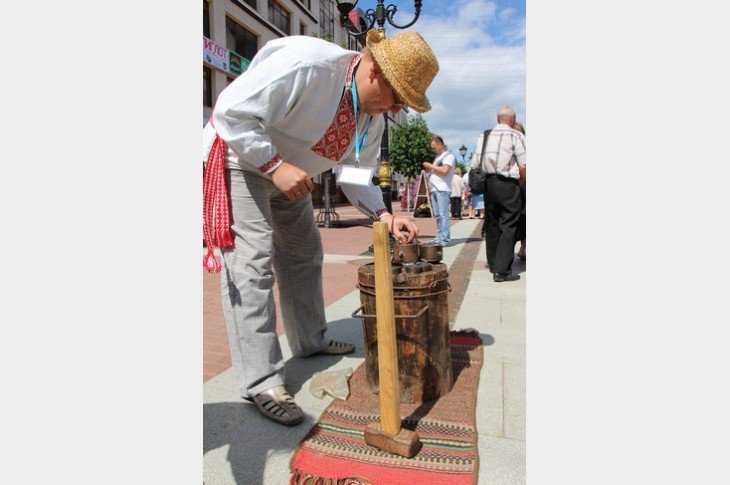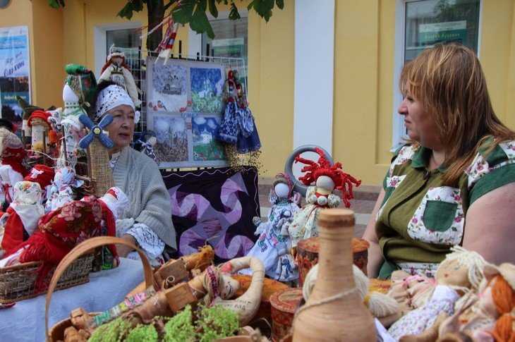 Камеры мобильных телефонов и затворы фотоаппаратов не переставали щелкать у выставки кукол в народных костюмах. Эту мастерицу примечают местные жители на многих городских праздниках. Масленица, Свенская ярмарка, День города не обходятся без ее участия. Эмма Николаевна Поленок − словоохотливая женщина. Она не старается продать своих барышень, но ей обязательно надо поговорить с людьми заинтересовавшимися.