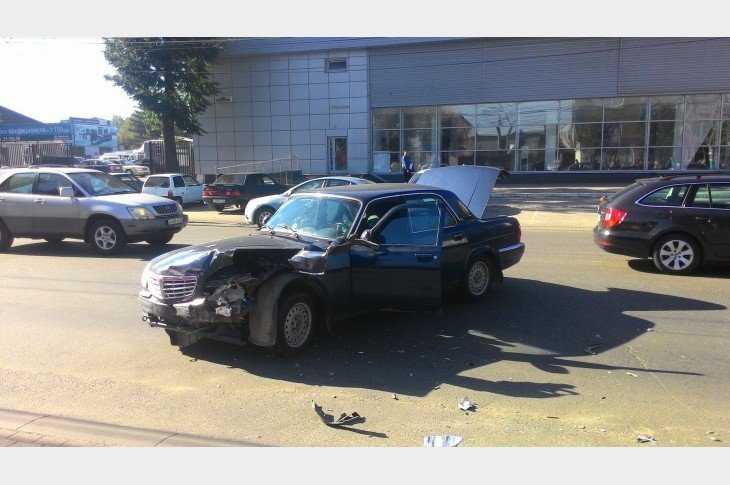Авария произошла у бывшего автомагазина «Форд». Водитель «Волги», поворачивая налево, не уступил дорогу двигавшемуся навстречу автомобилю «ВАЗ». В результате столкновения «ВАЗ» перевернулся. Обе машины серьезно покорежены.