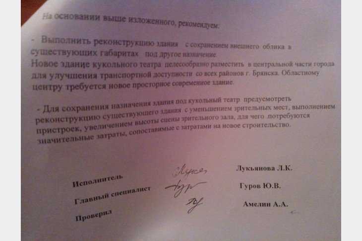 Брянский театр кукол на своей страничке в соцсетях выложил заключение экспертов.