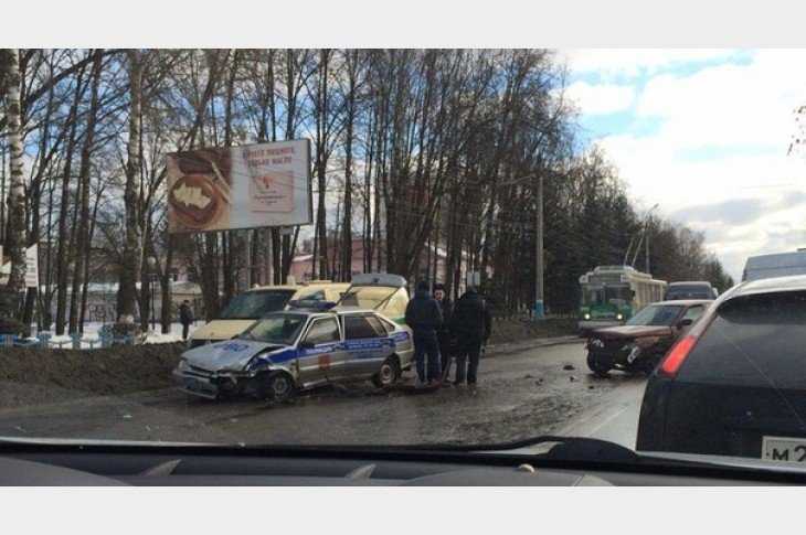 Авария с участием служебных автомашин полиции и инкассаторской службы произошла сегодня в Брянске на улице Красноармейской.