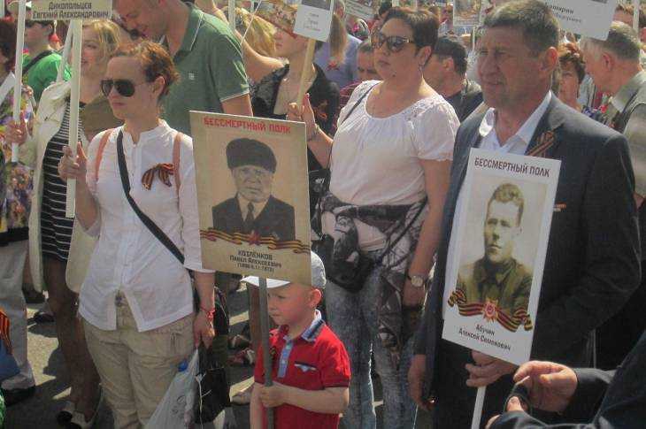 В Брянске завершил своё шествие Бессмертный полк: колонна горожан с портретами своих родственников – героев Великой Отечественной – прошагала от Кафедрального собора до Кургана Бессмертия.