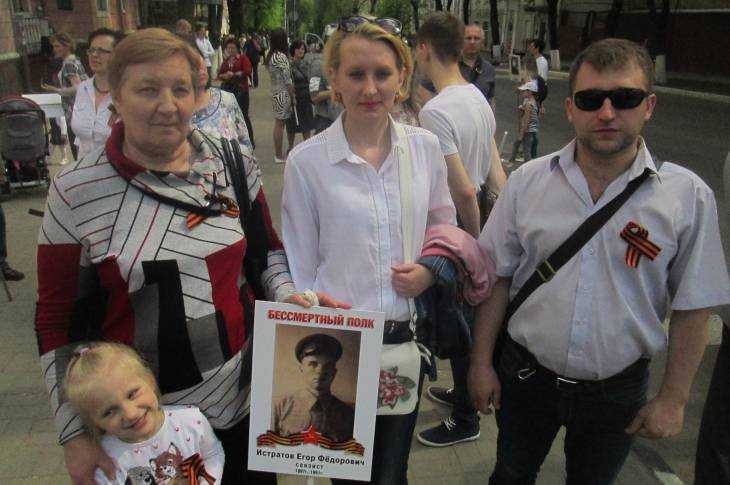 − На фотографии, которую держу в руках – Истратов Григорий Фёдорович, мой дедушка. Он был связистом артиллерийского полка. Награждён орденом Великой Отечественной войны. На фронт ушёл, когда ему было 45 лет. У него было семеро детей, выжили лишь трое. Он прошёл три войны – первую мировую, гражданскую и Великую Отечественную. В Брянске я живу с недавнего времени и в первый раз принимаю участие в акции «Бессмертный полк». Считаю, она необходима. Сын Григория Фёдоровича тоже воевал, был в немецком плену. Надеемся, в следующем году он тоже вступит в Бессмертный полк – придём сюда с его портретом.