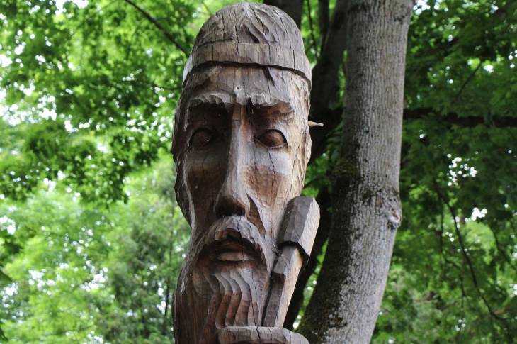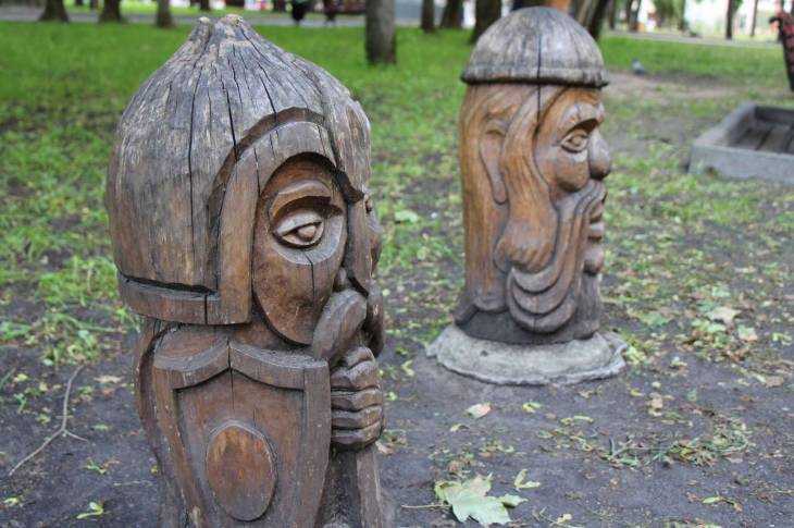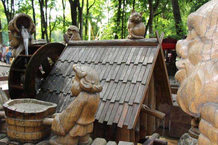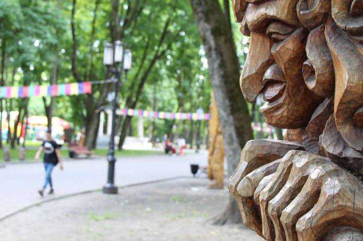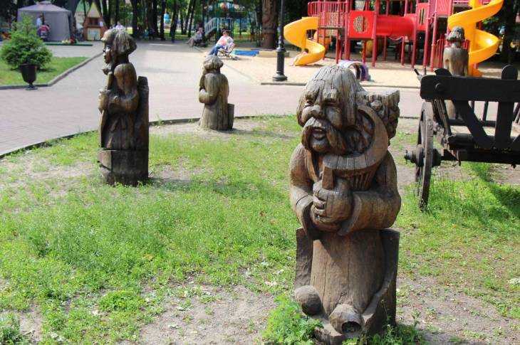 Сейчас здесь 22 деревянные скульптуры и скульптурные группы – около 45 фигур. Среди них старик-сказочник, Десняночка, Емеля, князь Роман Брянский, хлебопашец с хлебопеком, стеклодув, кузнец-молодец, портной и другие