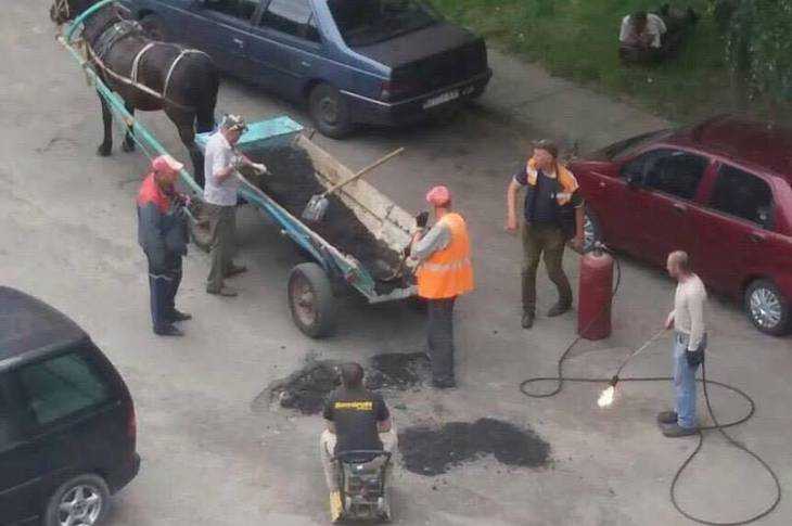 На фото запечатлена телега с асфальтом и рабочие, ремонтирующие дорожные ямы. Почему баловень сети решил, что на фотографии изображен Брянск, не совсем понятно. Стоит отметить, что комментаторы тут же указали на это бравому танкисту.