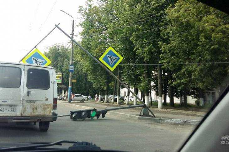 В Брянске на дорогу рухнул ржавый столб со светофором