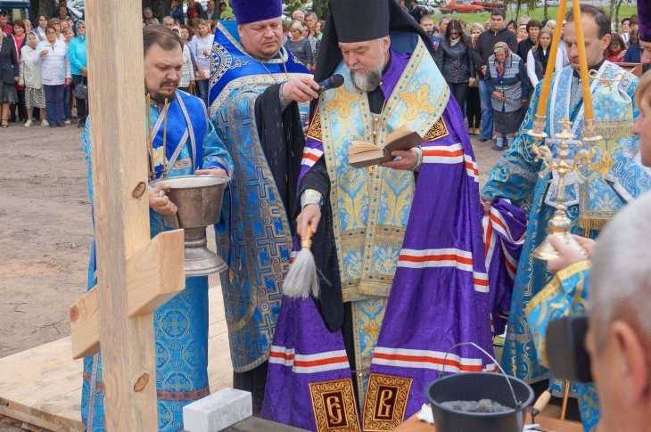 В присутствии депутата Государственной Думы Николая Валуева, главы Погарского района Эдуарда Дуданова, главы администрации Михаила Семернева епископ Клинцовский и Трубчевский Владимир совершил чин освящения закладного камня.