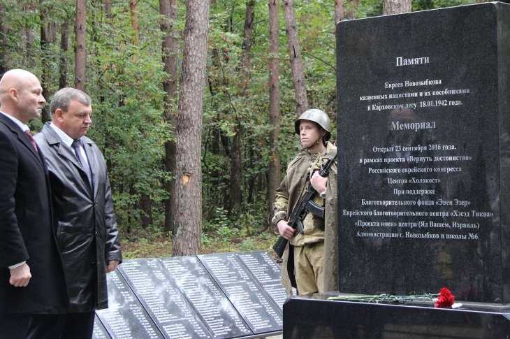 В ночь с 17 на 18 января 1942 года в Новозыбкове фашисты расстреляли сотни евреев. После освобождения города в Карховском лесу нашли семь ям, в которых 2860 трупов. Самая большая яма была заполнена трупами евреев. Было восстановлено более четырехсот имен расстрелянных.