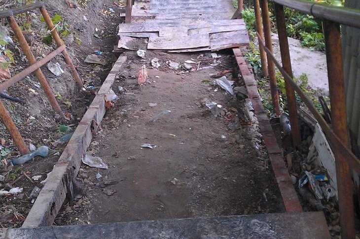 – Лестница в настоящий момент находится в аварийном состоянии. На самом крутом ее спуске обломаны перила, ходить просто опасно для жизни, в темное время суток темно хоть глаз коли. По всему видно, что никому эта лестница не нужна.