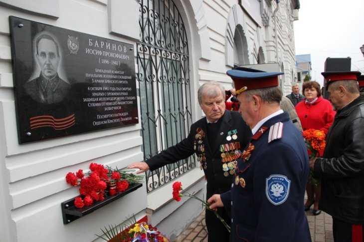 На брянской станции увековечили память героя войны Иосифа Баринова