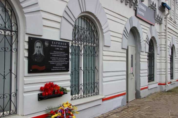 На брянской станции Суземка железнодорожники увековечили память героя войны, начальника военных сообщений 3-й Армии Брянского фронта Иосифа Баринова.