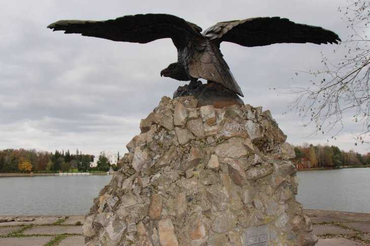 С противоположного берега пруда на дворец смотрит чугунный орел, сооруженный в 1903 году. Почему его установили здесь, так далеко от дворца? Возможно, потому, что напоминает он не просто о подвигах А. И. Барятинского, но о победоносном завершении Кавказской войны. А Кавказ – далеко, за реками и лесами…