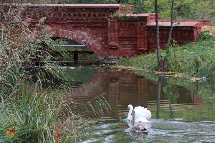 Парк ранее украшали оранжереи, здесь был зверинец и поэтические «кошары» для забавы княжеских детей. С обеих сторон парка через каналы перекинули мосты, четыре из них сохранились. Около каменного Горбатого моста любят гулять посетители усадьбы, они же прикормили лебедей, которые не просто поселились здесь – хозяйничают. Эти грациозные попрошайки нахально направляются к берегу, как только видят новых людей. Птицам бросают угощенья, но не пытайтесь протянуть хлеб или печенье: если серый лебедь берет лакомство аккуратно, то его белоснежная спутница бесцеремонно наносит удар по руке, оставляя на ней синяк или рану. Нахалка.