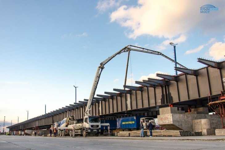 На строительства Крымского моста на острове Тузла сооружена первая плита проезжей части. Монолитная конструкция сформирована на четырех пролетах, позже на нее ляжет дорожное покрытие,