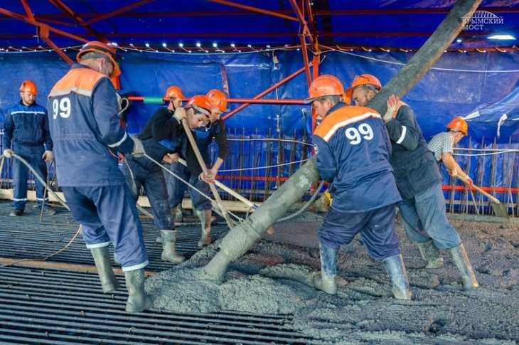 – Автомобильная часть Крымского моста включает две проезжие части. На каждой – по две полосы для движения транспорта. Сначала мы бетонируем участок в направлении Керчи, – рассказал начальник участка Виталий Дунайцев.
