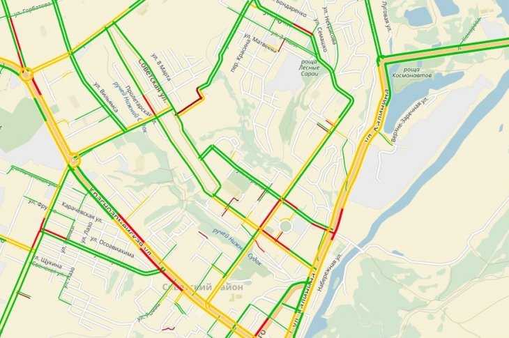 Громадных заторов нигде не наблюдается, но, судя по сервису Яндекс.Карты, небольшие пробки отмечаются на центральных улицах города. На Красноармейской улице − в районе таксопарка и автовокзала, по улице Фокина − от пересечения с Советской улицей до проспекта Ленина и от пересечения с улицей Луначарского до проспекта Ленина, проспект Ленина − от Горького до Фокина. Есть небольшие пробки на улице Калинина в сторону Володарского района, а также на 2-м Советском переулке сразу после Малыгинского моста. На улице Авиационной пробка от кольца до улицы Горбатова.