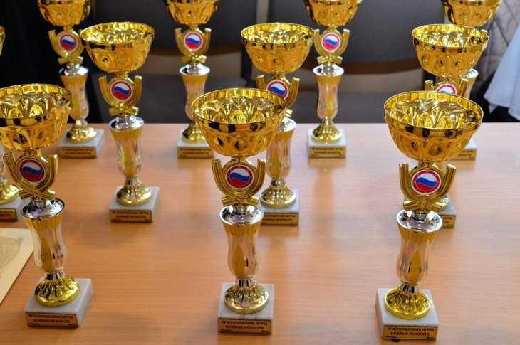 Почетные гости вручили всем представителям федераций, участвующих в соревнованиях, памятные кубки за участие в IV юношеских Играх боевых искусств Брянской области.