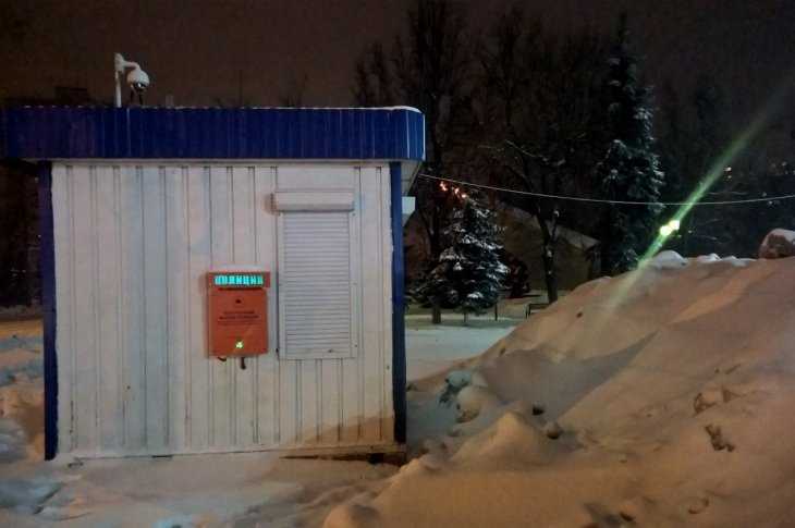 Пробраться к будке можно лишь с тыла, и то по глубокому снегу. Сиротски светится надпись около «тревожной» кнопки, висит на двери замок, который уже давно не открывался.