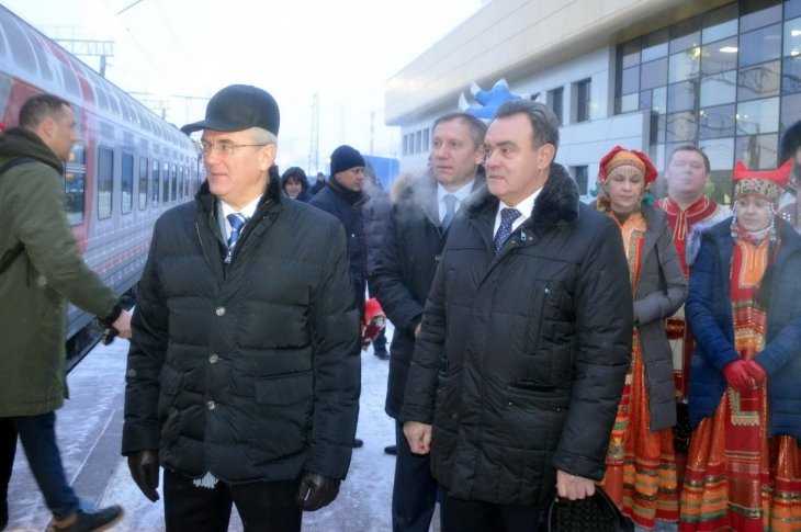 На перроне гостей встретил губернатор Пензенской области Иван Белозерцев и секретарь отделения партии «Единая Россия», председатель законодательного собрания региона Валерий Лидин. Как это и положено по русскому обычаю, брянцам преподнесли хлеб-соль.