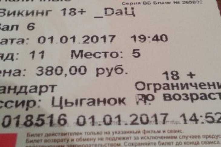 – Время сеанса было 19-40, но вместо заявленной версии 18+ показали версию 12+! За билет заплатил 380 рублей. По окончании сеанса к дежурному администратору обратились шесть человек с претензией, но администратор после звонка механику заявила, что нам, всем шестерым, показалось, что в действительности была продемонстрирована версия 18+! Во время сеанса в зале и другие зрители обратили внимание на это. Что еще вызвало подозрение, так это отсутствие продолжительной рекламы, которая обычно предшествует любому сеансу в этом кинотеатре. Была только одна короткая реклама мультфильма, причем без обычных и обязательных предупреждений от администрации кинотеатра о соблюдении авторских прав сразу начался показ самого фильма «Викинг», где перед титрами мы увидели надпись «12+». При этом никто из нас так и не увидел заявленных жестких и откровенных сцен, которые должны были донести правдивые исторические реалии того времени и сопровождать версию 18+.