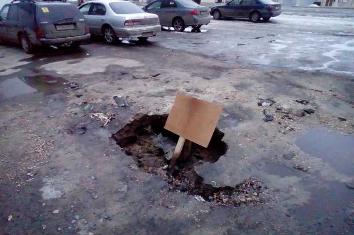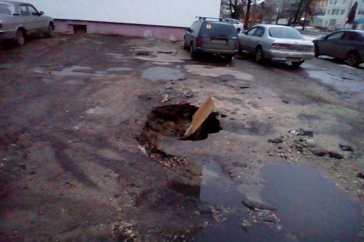 В Брянске около дома 51 на улице XXII съезда КПСС провалился асфальт.