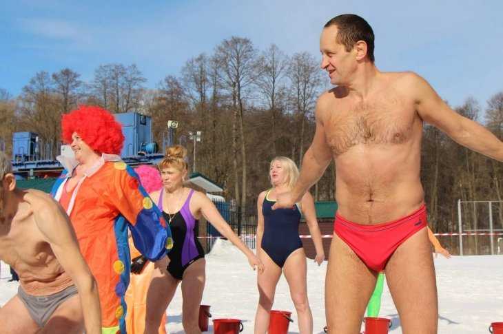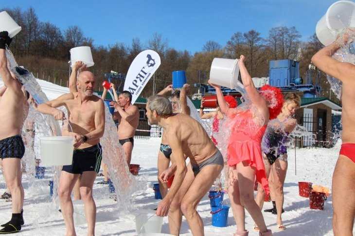 В спортивном парке «Варяг» участников ледяного зрелища встречал хозяин клуба Леонид Вольпер. На снежной глади красивого лыжного спуска виднелись ведра, наполненные холодной водой. Бело-сине-красные емкости, повторявшие цвет российского флага, подтверждали, что ледяной душ будут принимать по всей стране.