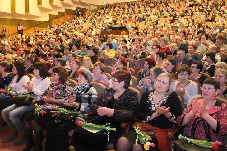 Уже в фойе концертного зала «Дружба» под звуки чарующей музыки генерал-майор в отставке Владимир Ревенко, Герой России, глава компании «Надежда» Евгений Гавричков и юные кадеты вручали дамам тюльпаны.