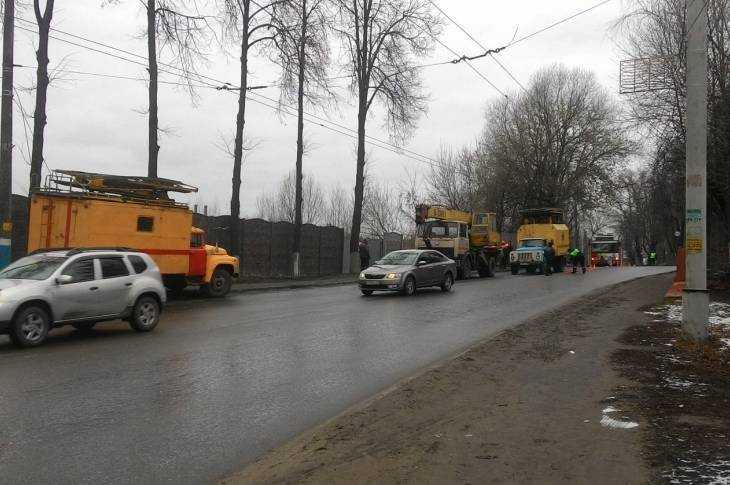 В Брянске водитель автомобиля «ВАЗ» не справился с управлением и врезался в электроопору, которая нависла над дорогой. Вследствие этого была обесточена троллейбусная линия. Автомобиль получил значительные повреждения.