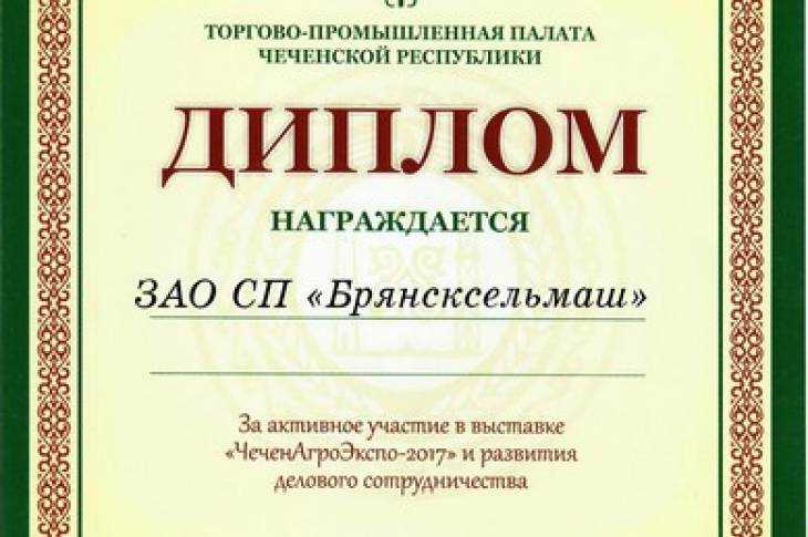 По итогам выставки ЗАО СП «Брянсксельмаш» наградили дипломом «За активное участие и развитие делового сотрудничества».