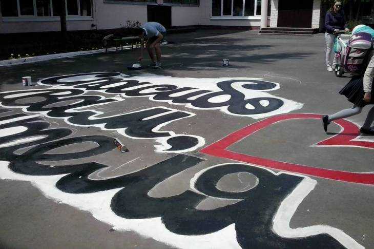 В седьмой гимназии Брянска на асфальте одиннадцатиклассники старательно выводили слова признания: «Спасибо вам, учителя». Запятую дополнили изображением сердечка – любовь к родному учебному заведению навсегда останется первой.