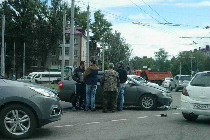 В Брянске на кольцевой развязке у «Полтинника» случилось очередное столкновение автомобилей.