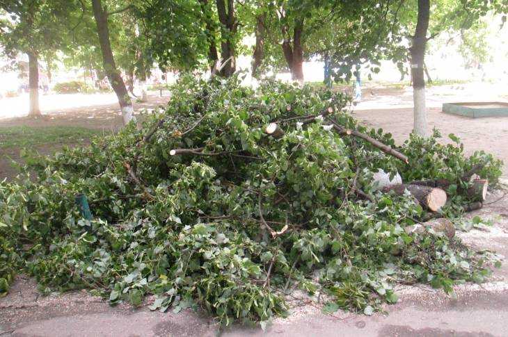 В брянском дворе шквальный ветер вырвал с корнем дерево
