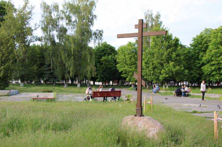 В это время голубь сел на вершину деревянного креста, установленного посередине сквера.