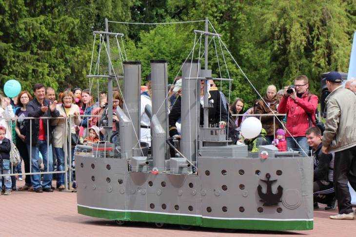 На площади репортеры «Брянских новостей» встретили победителей предыдущих парадов Светлану и Артема Курдынко. Их коляска вызвала охи и ахи зрителей. По морским просторам парка плыл крейсер, а с капитанского мостика гордо взирали моряк, морячка и матросик. Семья Курдынко получила Гран-при и на этот раз.