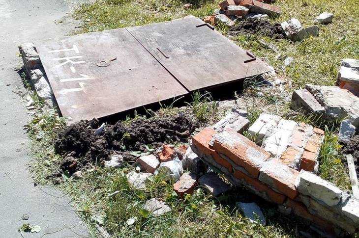 Рабочие сняли верхний ряд кладки колодца, кирпич разбросали по газону, а неровный колодец прикрыли листом железа. По словам местных жителей, при таком подходе лучше бы вообще не трогали люк: «Сделали еще лучше прежнего».