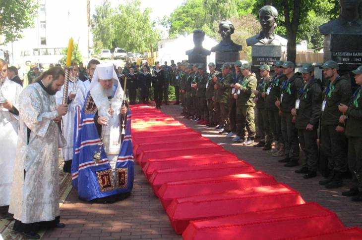 Митрополит Брянский и Севский Александр отслужил заупокойную литию по убиенным людям, после чего десятки гробов с останками жертв фашизма опустили в две братские могилы.