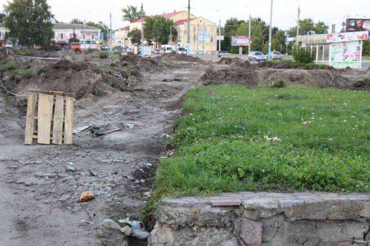 Вместо Семеновского сквера Брянска осталась вскопанная земля и обломки парапетов.