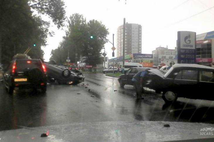 В Брянске после столкновения трёх автомобилей перевернулся «Ниссан»