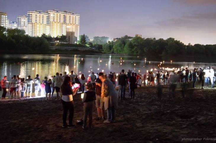 Более тысячи человек собрались на пляже у вокзала Брянск -1. Они держали в темноте зажженные фонарики в форме цветов, которые потом опустили в воду. Десна покрылась звездочками, которые уходили вниз по течению. Все действо сопровождалось музыкой и огненным шоу.