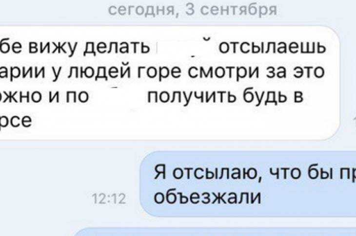 На Маргариту Доброву, которая опубликовала в сети снимки ДТП, обрушился некий Александр, пригрозив ей расправой. Он сообщил ей, что якобы работает в МЧС.