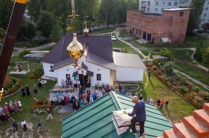 В брянском городе Дятьково вечером 3 сентября установили малый купол на колокольню строящегося храма во имя преподобного Сергия Радонежского.