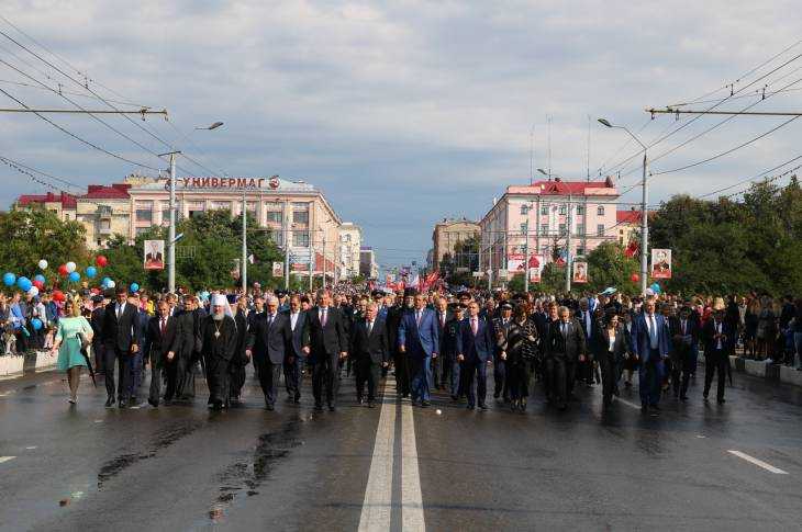 А затем по проспекту Ленина в торжественном марше прошли колонны делегаций из районов Брянска, сотрудники городских предприятий, представители общественных организаций и политических партий, школьники и студенты, работники учреждений культуры и спорта.