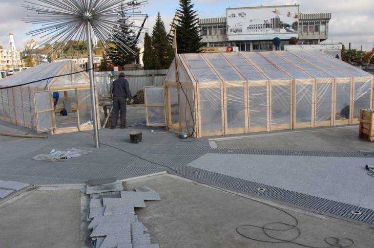 – Чтобы не мешал дождь, мы соорудили тепляки, под пленочной крышей и укладываем гранит, – рассказал «Брянским новостям» глава компании «Мегаполис» Алексей Кубарев.