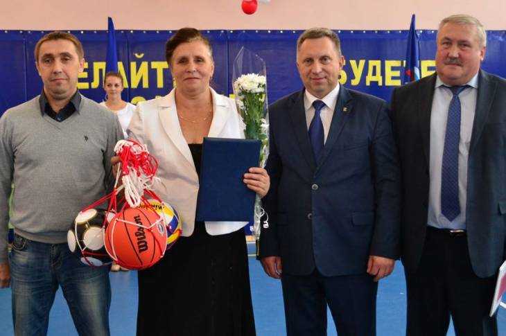 От Брянского регионального отделения «Единой России» Андрей Сотников и Александр Стёпин вручили школе набор мячей.