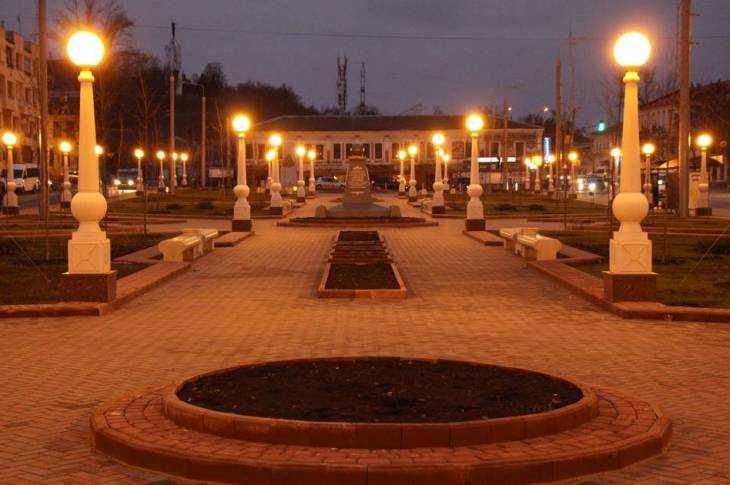 Обновленный Семеновский сквер Брянска привлек первых влюбленных. Они прогуливаются под фонарями и оценивают белые скамейки.
