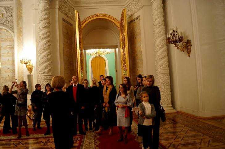 Делегация посетила резиденцию президента в Кремле, другие залы, доступ в которые обычным посетителям ограничен, так как здесь проходят инаугурация президента и другие государственные церемонии.